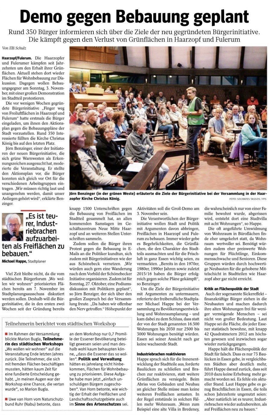 WAZ Essen (Südteil) zur Podiumsdiskussion (29.10.)